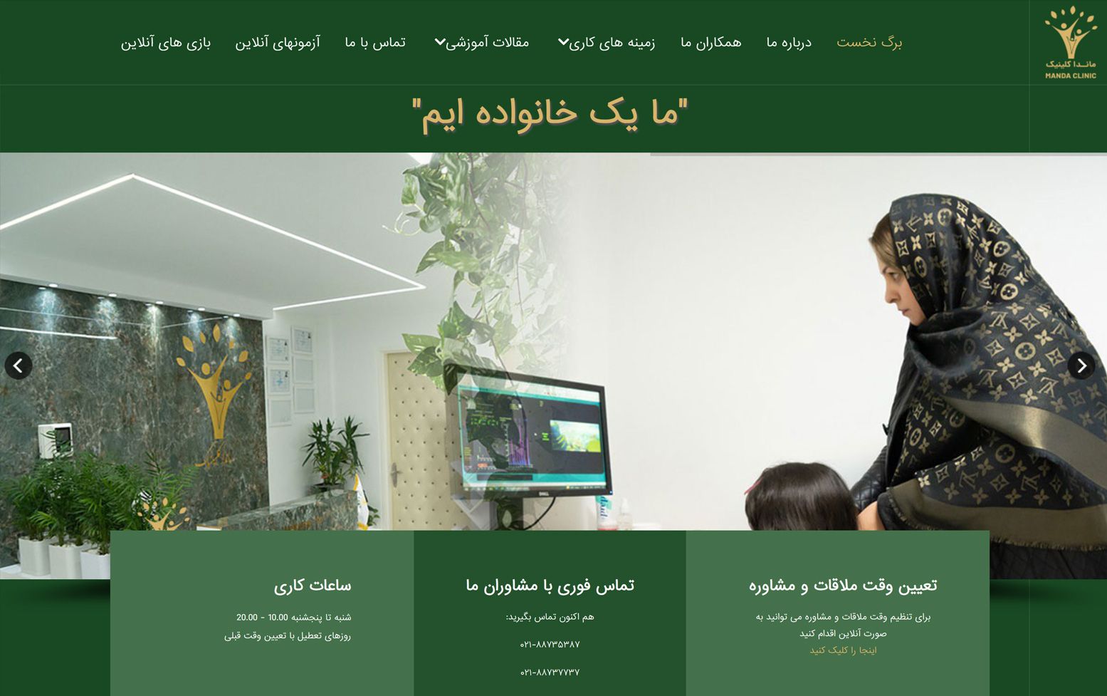 طراحی وب سایت کلینیک روانشناسی ماندا ماندا کلینیک مجموعه ای از مشاوران،درمانگران و پزشکان متخصص و باتجربه است که در حیطه های روان شناختی خانواده فعالیت می کنند.هدف ما کمک به بهبود عملکرد تک تک اعضای خانواده، ایجاد روابطی محکم بین اعضا، بالا بردن سلامت روان آن ها و ارتقا سواد روان شناختی اعضای جامعه است.همچنین به افرادی که خواهان تغییر و بهبودی فردی و خانوادگی هستند کمک می کنیم تا برای رسیدن به اهداف و چشم اندازهای خود،انتخاب های موثر و آگاهانه ای داشته باشند. صفر تا صد سلامت روان خانواده تان را به ما بسپارید. زبان برنامه نویسی نوع وب سایت: وب سایت های پزشکی و سلامت تکنولوژی : PHP, Java Script, CSS, HTML5 License: Anothervista تاریخ انتشار: 2023